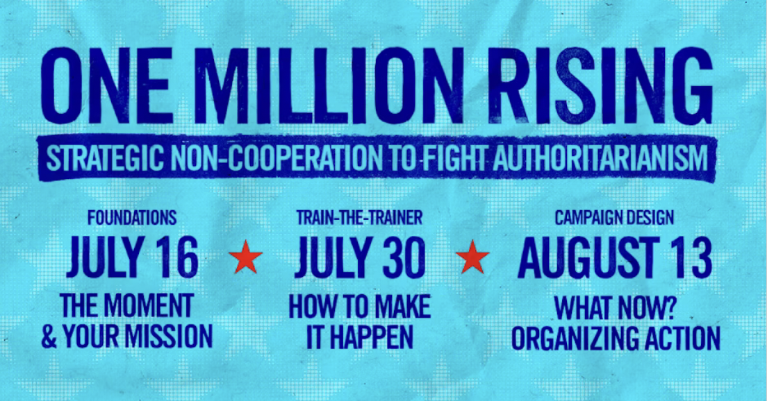 On July 16, Indivisible and partners held the first One Million Rising virtual training session with 150,000 attending, possibly the largest-ever training on non-violent action.
